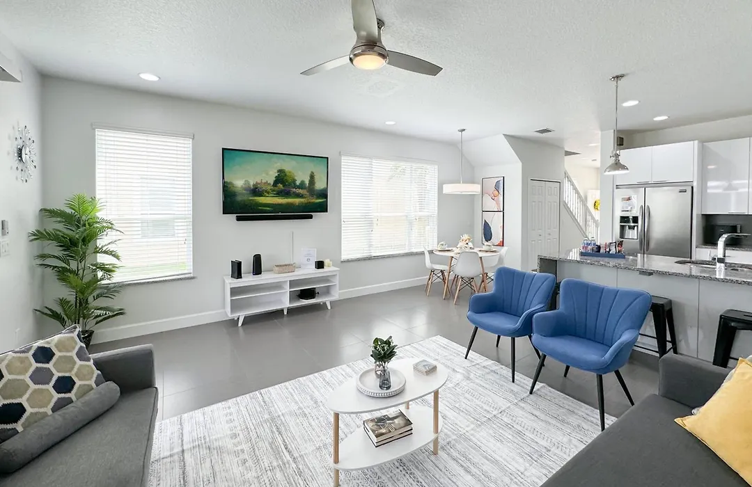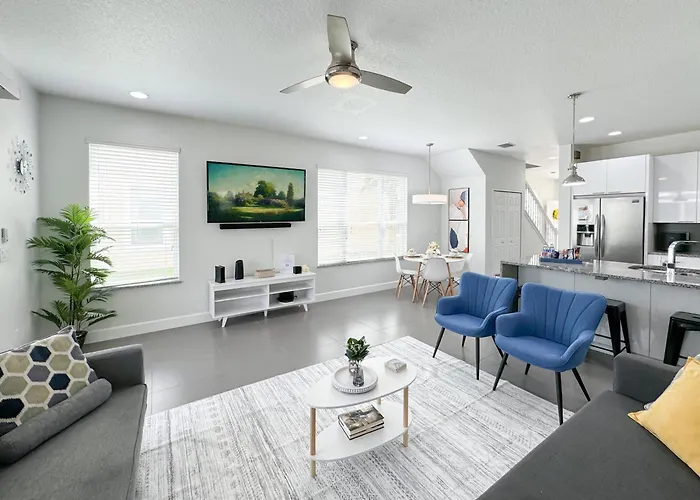 La 17319 Tranquil 5Bd Home Serenity Near Disney dispone de una cafetera/tetera, una nevera y un horno para cocinar. Los huéspedes pueden llegar fácilmente al aeropuerto Internacional de Orlando, situado a 51 minutos en coche de esta casa de vacaciones.